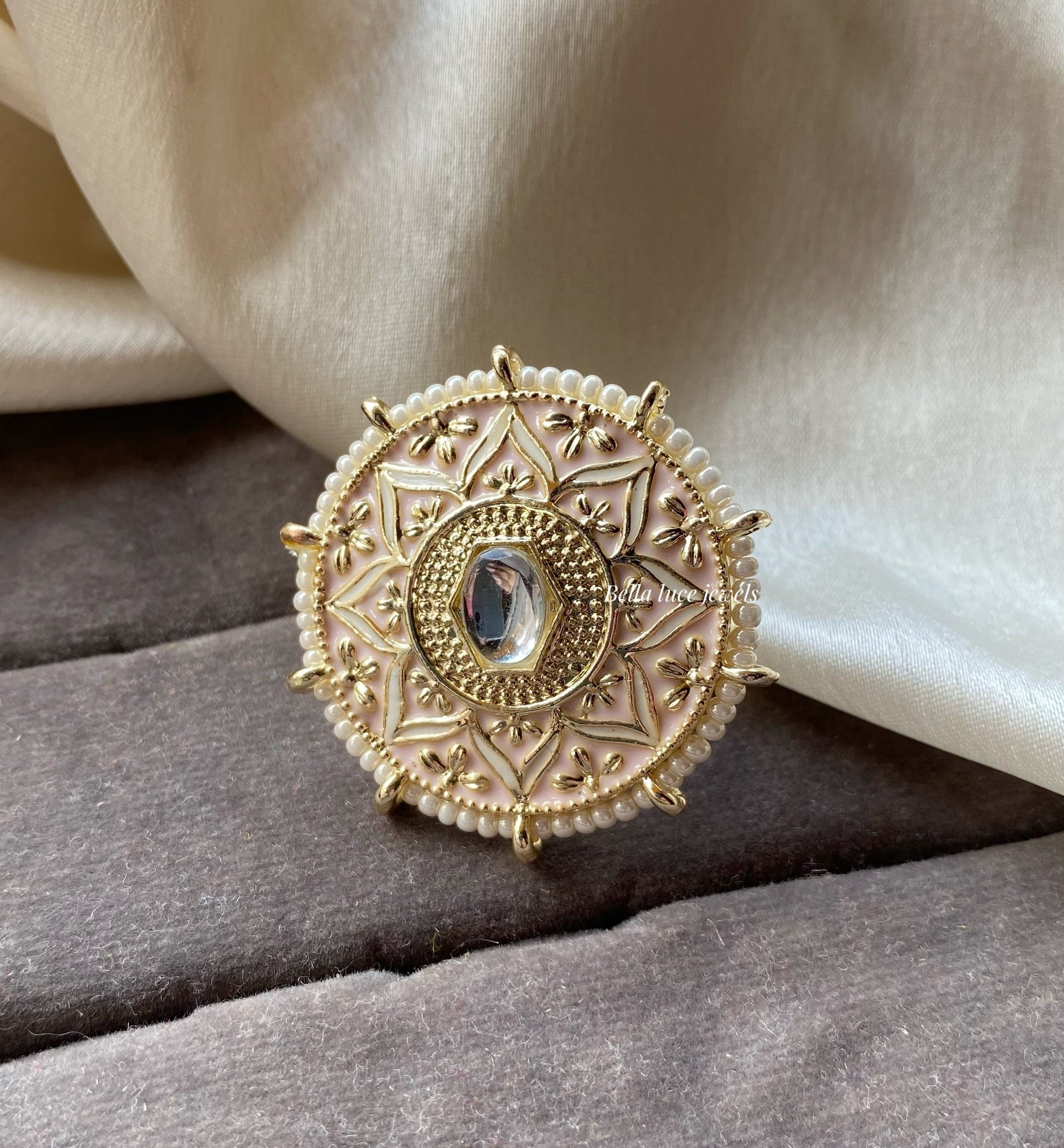Material: Made In brass with hidh quality kundan stone and hand painted meenakari work. Adjustable.